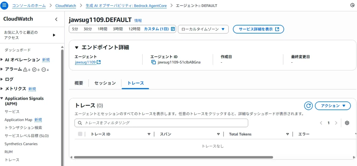 │    https://console.aws.amazon.com/cloudwatch/home?region=ap-northeast-1#gen-ai-observability/agent-core                                                         │