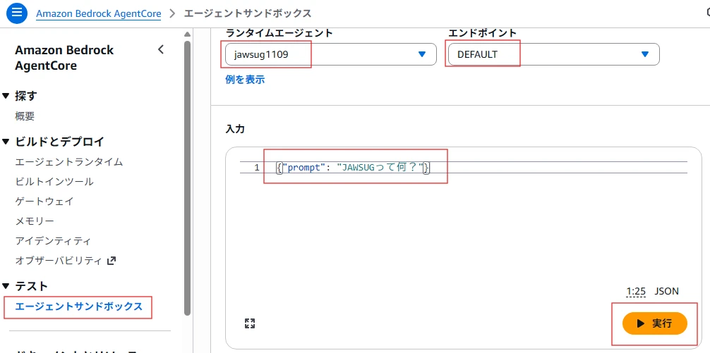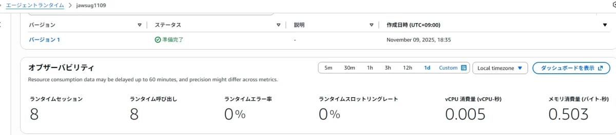 ・マネコンのサイドバー「エージェントランタイム」からエージェント名jawsug1109をクリック