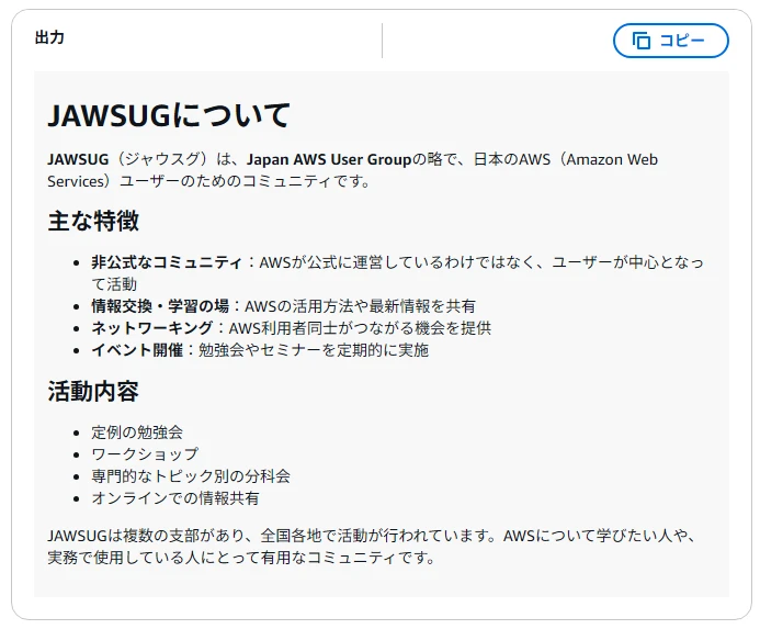 ターミナル上からもプロンプトを投げることができましたが、マネコンからテストしてみます。